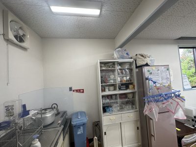 さて、教室内は養生が施されて、器具取替開始(‘ω’)
