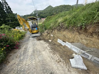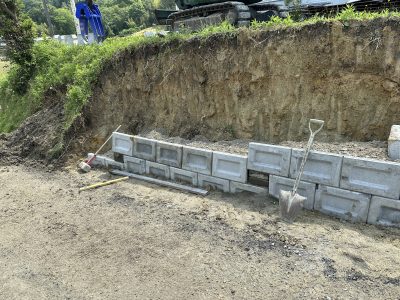 自社倉庫横、車幅拡張、法面工事、間知ブロック据付!②