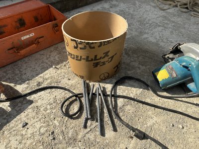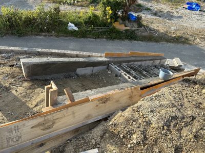 さて、前回打設の階段の袖壁の型枠が乾いたので、