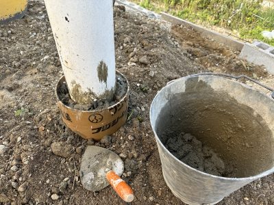 支柱の根元をコンクリートで巻いておきます(; ・`д・´)