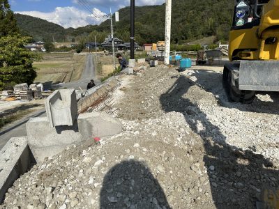 自社倉庫横、擁壁上ブロック積み⑤!