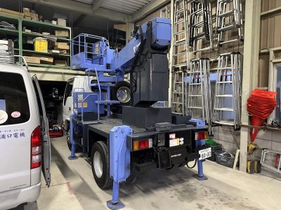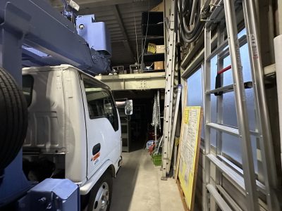 さて、自社倉庫に戻ってきますと、そのまま高所作業車を