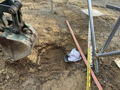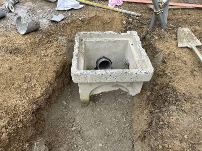 古い枡から、建物側にも雨樋からの排水管を仕込んでおく