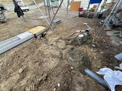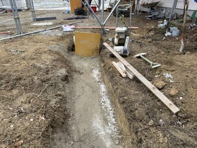 建物前の地盤を均して、転圧して不陸整正(‘ω’)