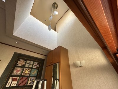絶縁の悪い、玄関吹抜けの天井照明、。。