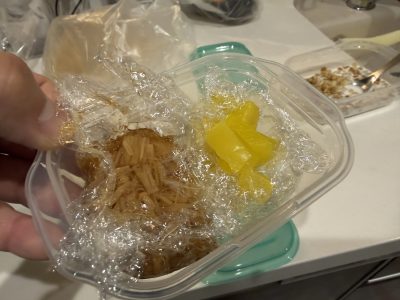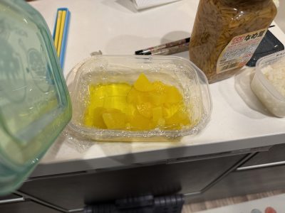 なめ茸、沢庵、、を小さいタッパーにつめて、、