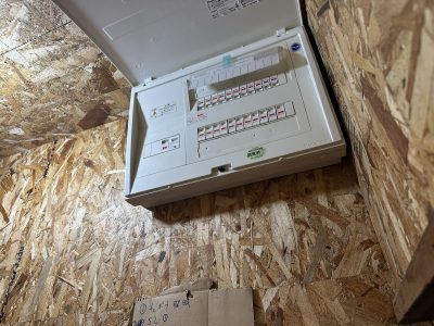 分電盤の背中にも穴をあけて、その配線をいれます(‘ω’)