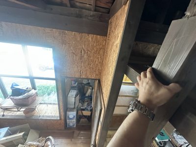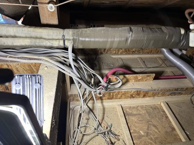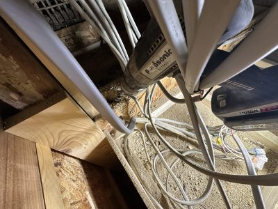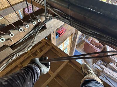 天井の上に登ると、配線が分電盤に向かっておりてます(*’ω’*)