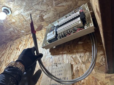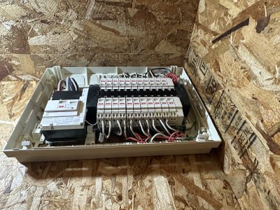 分電盤を浮かせて、配線を室内にとりこむ、、