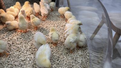 ひよこを両手でふんわり抱きかかえるとなんとも
