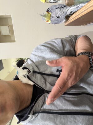 このようにパーカーのフードや服に潜って