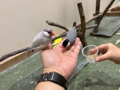 そして文鳥などの小型の鳥さん達にはエサをさしのべると