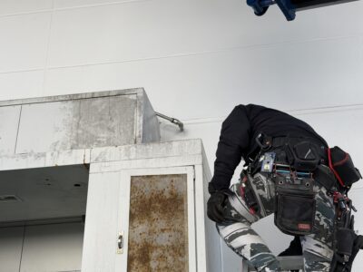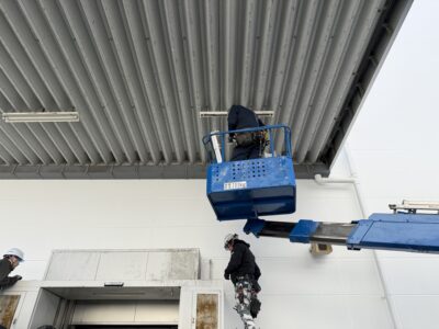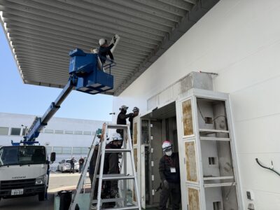 今回は屋外のエアカーテンの更新ですが、
