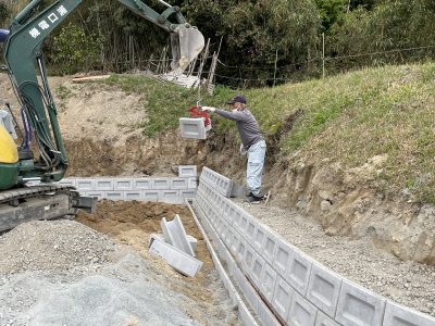 ご覧のように、現場の奥へもまだまだ間知ブロックが100個ほど