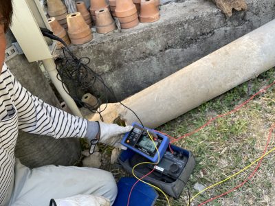 を掘削して、銅板やアース棒を数本埋め込んでいるわけです(*’ω’*)