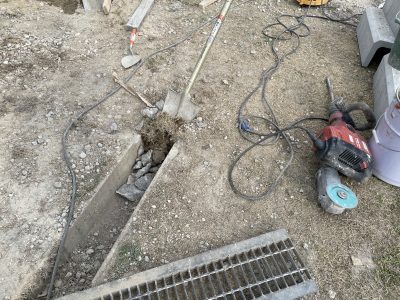 今日は枡の開口で、コンクリートカッターを多用しているので