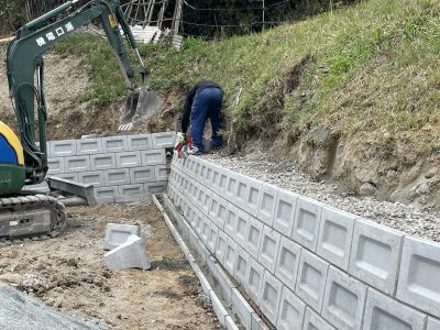 間知ブロックも4段目にさしかかってきております(‘ω’)ノ