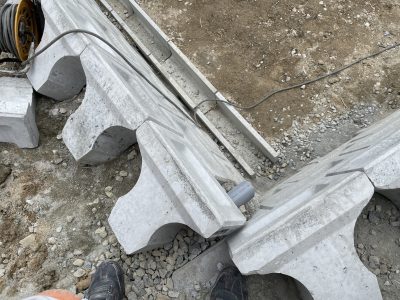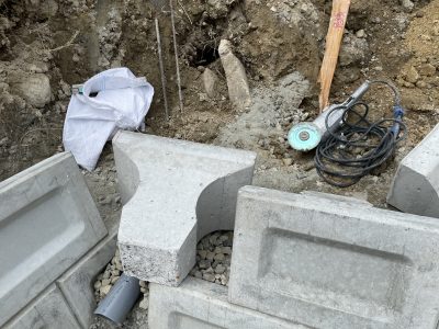 間知ブロックを並べてま配っておくと、調整して並べてくれるので、