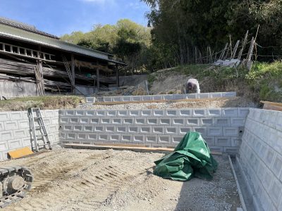 家でも建つかのような立派な土留めになってきました(; ・`д・´)