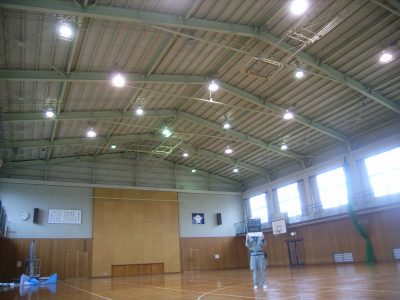 小学校や中学校の体育館のアリーナには照明が設置されてます。