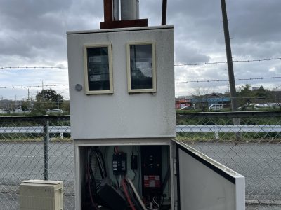 受付の事務所棟の廊下にある盤を開けると、ジャックナイフの