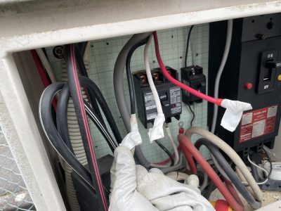 悪いほうの電線を外して、電源を送ろうにもハンドルがあがらないので、