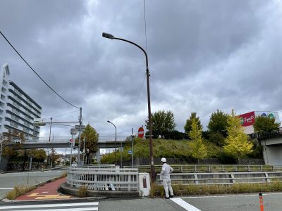 今回は、この交差点にそびえたつ8m柱の道路照明の