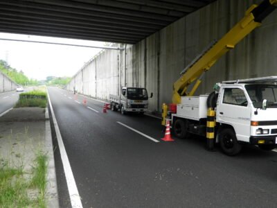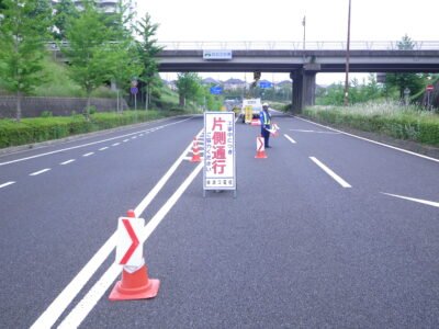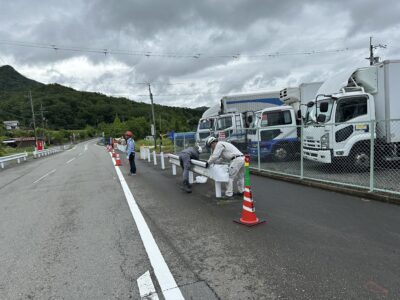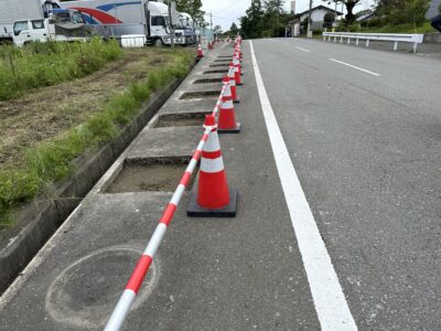 車道を規制して、数か所転々としながら作業していきます(‘ω’)