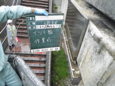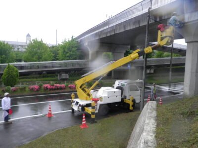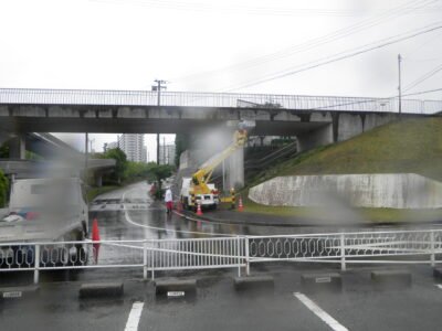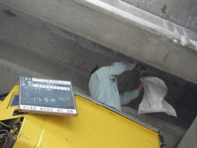 橋梁下での遊離石灰除去作業の続きです(‘ω’)ノ