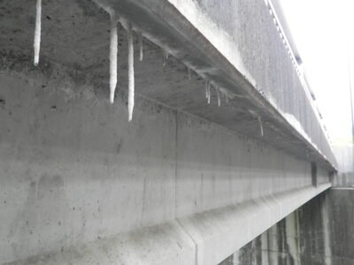 橋の下などコンクリートから染み出た白いツララのような