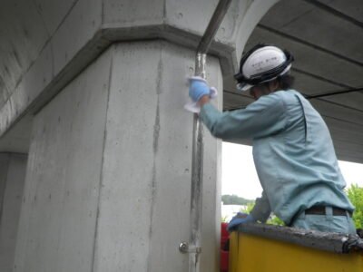 橋梁、遊離石灰除去作業!エフロレッセンス②! -三田市土木工事-