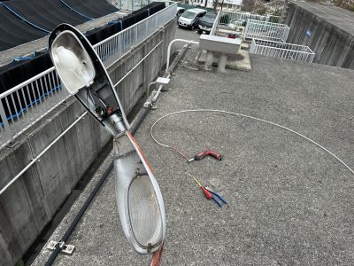 今回は、この引込柱に防犯カメラとセンサーライトを設置したいと思います(*’ω’*)