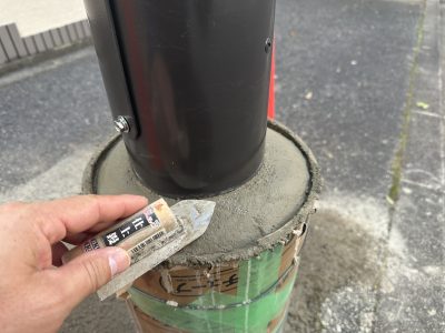根元を見てみると、コンクリートの薄い根巻コンクリート