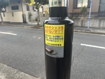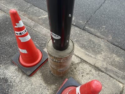 工事車両が遊歩道を走行中にこのポールに接触してしまって