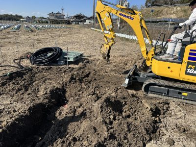 管路掘削時にバックホウで移植作業も同時に行います(‘ω’)