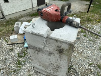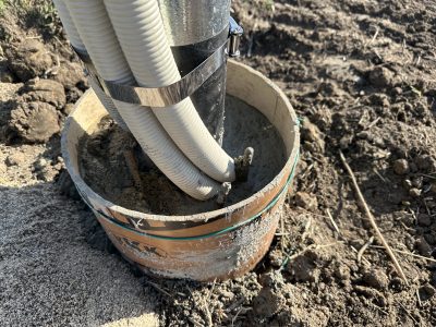 手前で引込柱を設置し、あとは埋設にてログハウスまで