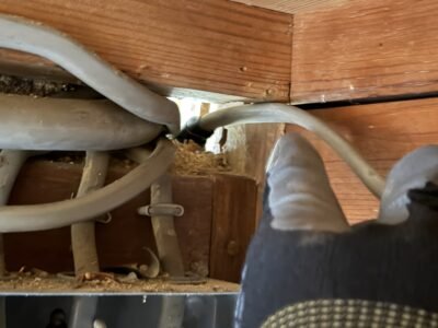 この電線達が外に貫通している部分をネズミがかじって