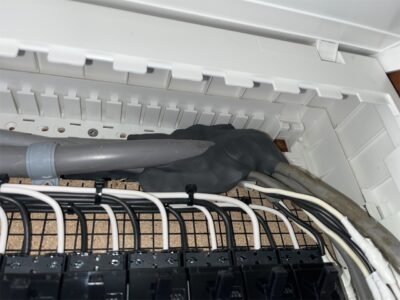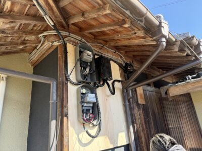 屋内から分電盤の電線が屋外に貫通している箇所から