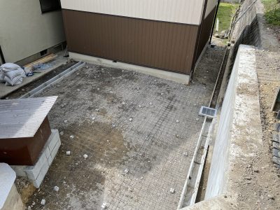 駐車場スペースを土間コンクリートを打つ前に法面と