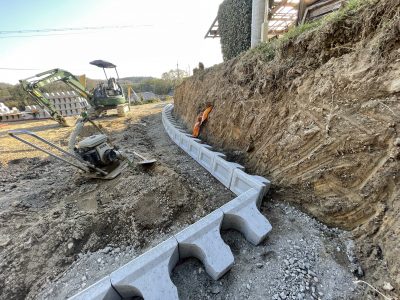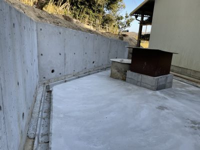 スロープの手すりも外側なら、配管をこていできそうなので、