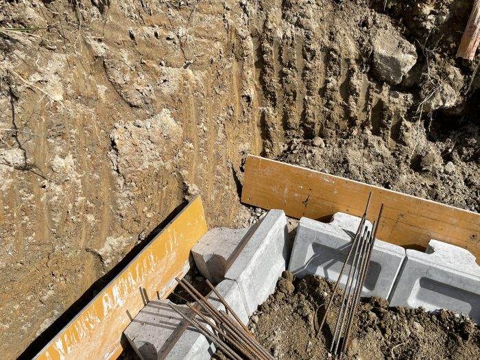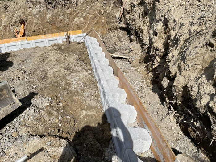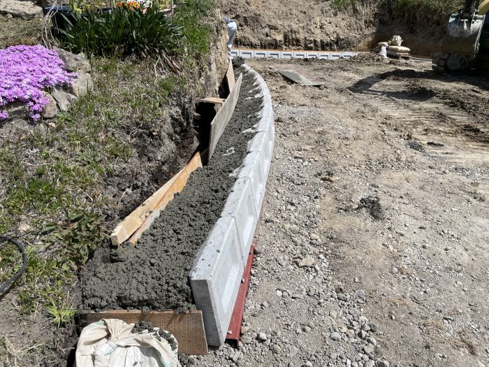 間知ブロック1段目が並べ終わったところで、
