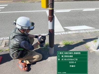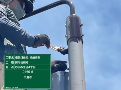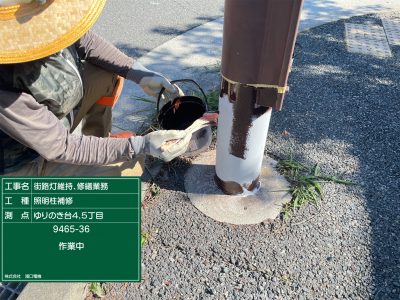照明柱サビ除去作業!FRPはがし!