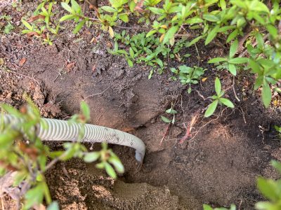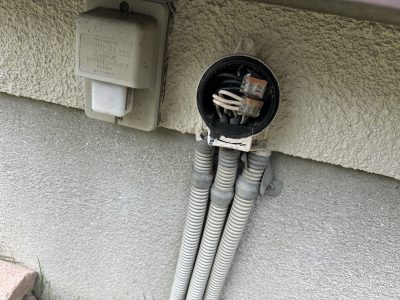 門灯、庭園灯へそれぞれいっている配管が、外部電源と