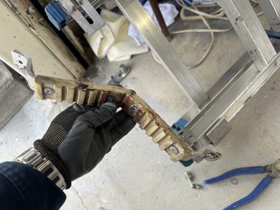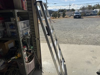長い2段梯子はアルミといってもそこそこ重たいし、