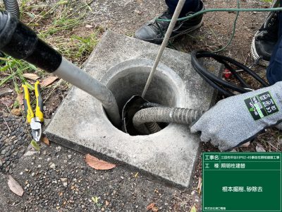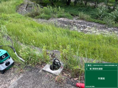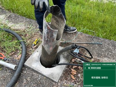 ポール建替えの前に、照明柱基礎コンクリートの中を