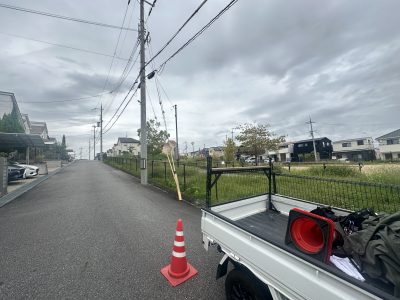 まずは試験点灯させるために引込盤へ行きたいが、、