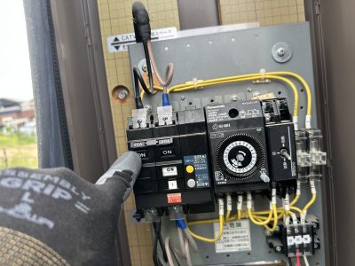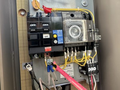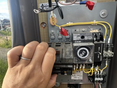 某公園の照明盤内の不具合を調査しにきました(‘ω’)