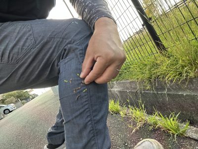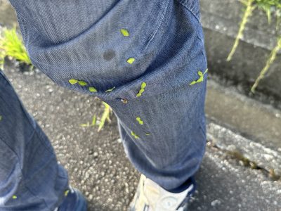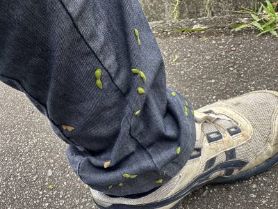 こ、、これは引っ付き虫がたくさん絡んだ雑草たちが、
