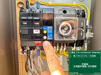 照明盤内、リモコンブレーカー交換!引っ付き虫地獄!
