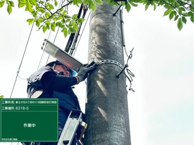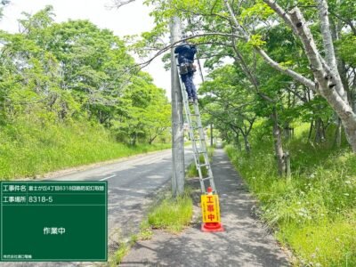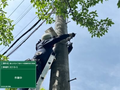 架空線にて電源を引込して防犯灯を設置します(‘ω’)ノ